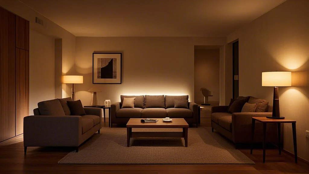 적절한 조명 활용은 공간 분위기를 바꾸고 넓어 보이는 효과를 줄 수 있습니다. ✨ 간접 조명을 활용하여 천장을 높아 보이게 하거나, 스탠드 조명으로 특정 공간을 강조하여 시선을 분산시키는 것이 효과적입니다. 조명 하나로 공간의 분위기를 아늑하게 연출해 보세요.
